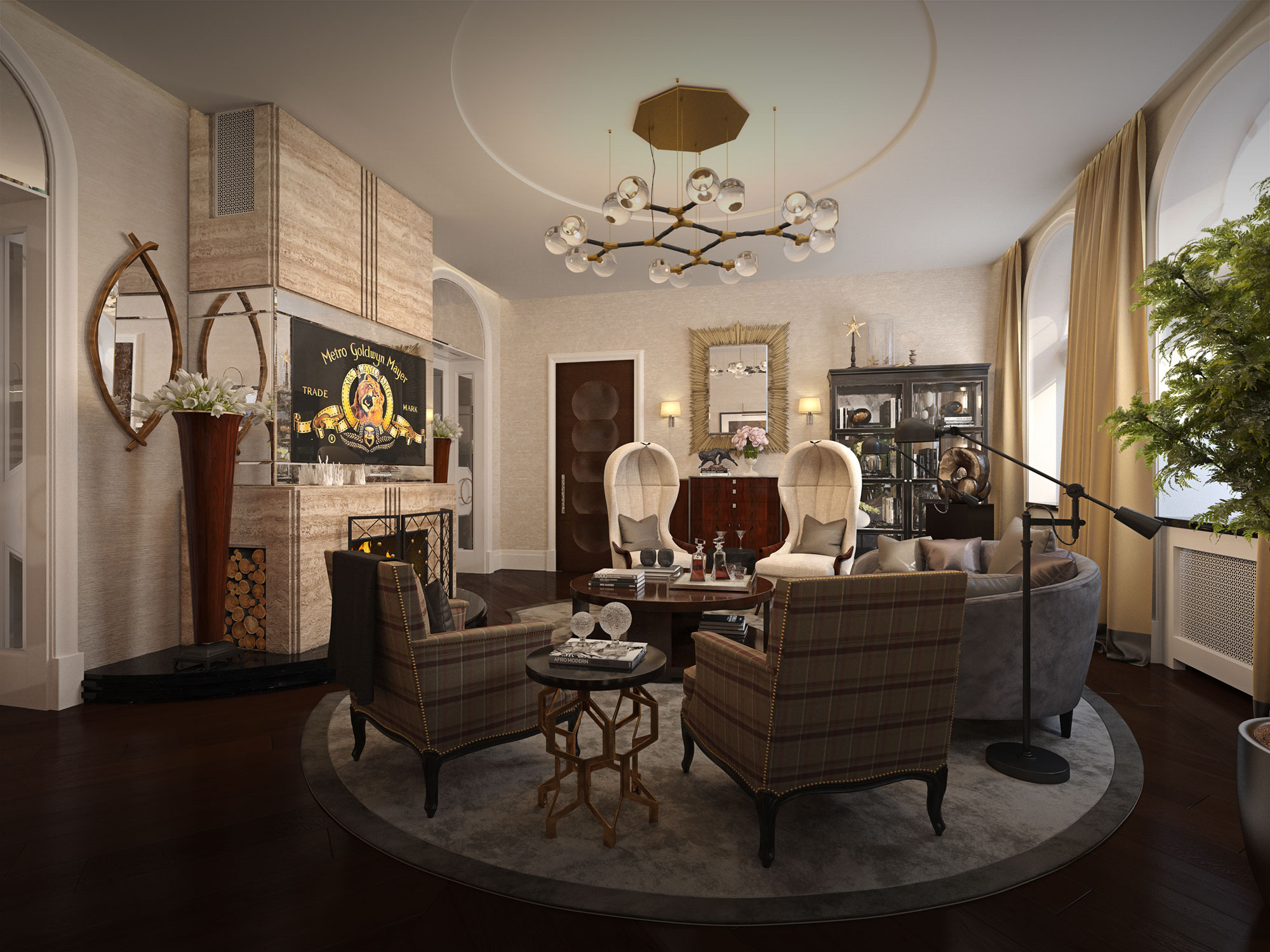 Спальня хозяина отделана в темных тонах и украшена барельефом, который был изготовлен по заказу местным скульптором, чтобы подчеркнуть элегантность помещения.