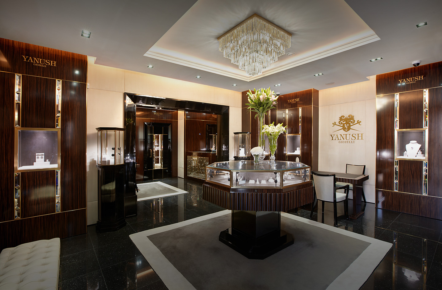 Стиль магазина характеризуют энергичность, уровень мастерства и особое внимание к элементам ювелирных изделий, которые выгодно подчеркивает мебель с классическими элементами, изготовленная по специальному заказу.